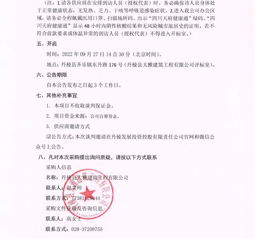 丹棱縣 2020 年、2021年及2022年批次老舊小區(qū)城市燃氣管網(wǎng)老化更新改造項目燃氣管網(wǎng)改造專業(yè)分包項目談判邀請公告