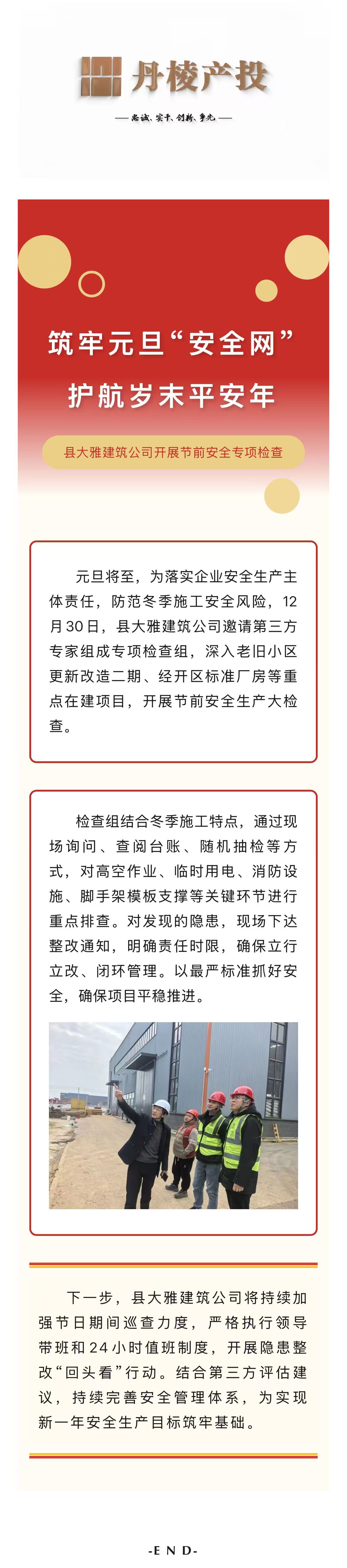 【縣大雅建筑公司】筑治:筑牢元旦“安全網(wǎng)” 護(hù)航歲末平安年