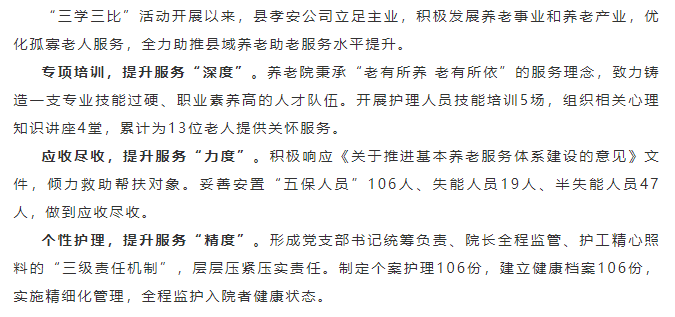 丹發(fā)展集團“三學(xué)三比”活動系列成效③——縣孝安公司:聚力養(yǎng)老服務(wù) ,讓老有所依