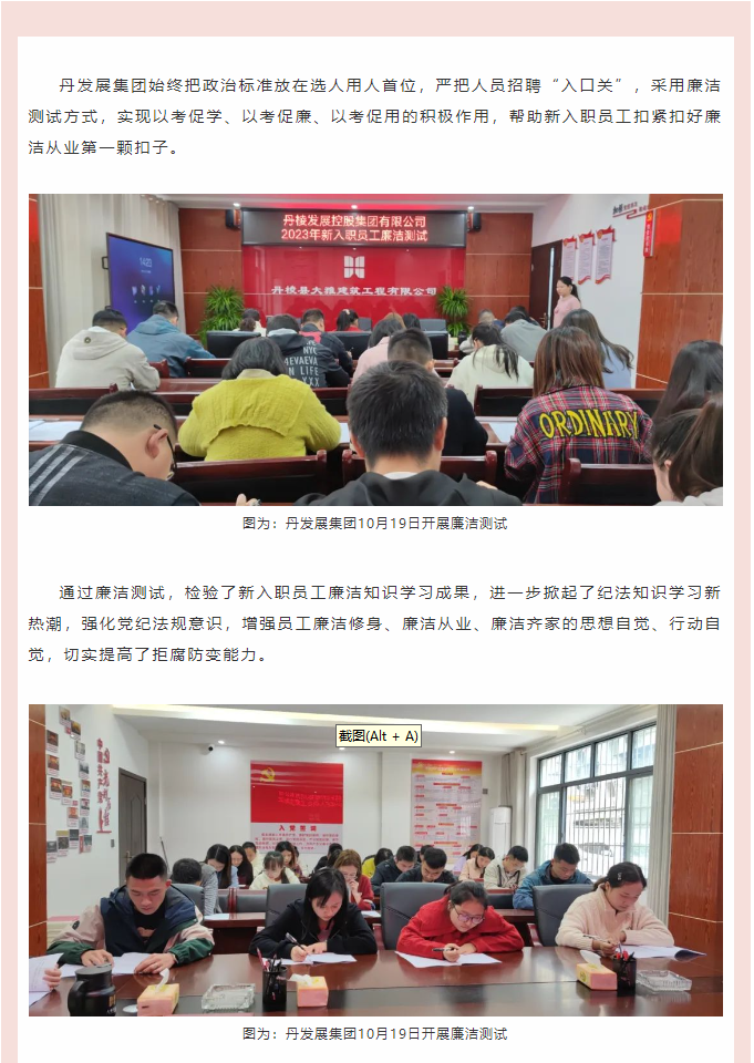 以考促學(xué)、以學(xué)促廉、以廉促行——丹發(fā)展集團(tuán)開展2023年新入職員工廉潔測試